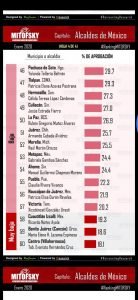 La aprobación ciudadana más alta, con 71.3, la obtuvo el presidente municipal de Mérida, Yucatán.