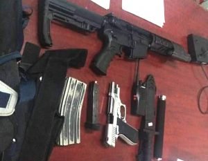 Al efectuar la revisión del carro sedán que gris en el que se trasladaban, los policías encontraron que transportaban el armamento que utilizaban para realizar diversos ilícitos.