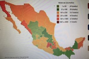 Esta sábado, en el mapa epidemiológico, la entidad pasó del color verde que agrupaba a las entidades con menos de 250 positivos al covid-19, al rojo claro, que es el grupo de cuatro estados con 251 a 500 casos. Otros 361 sospechosos también esperan los resultados de las muestras tonadas para el laboratorio.