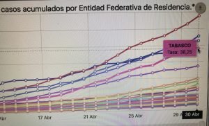 La curva ascendente de casos y defunciones por el SARS-Cov-2 en la entidad, se mantuvo de principio a fin durante el mes de abril, pero de manera incontrolable y preocupante. No hay forma de “aplanar” la curva en Tabasco.