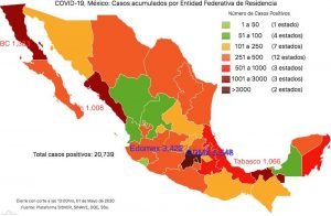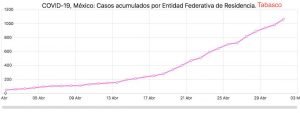En el primer día de mayo, Tabasco llegó a mil 66 casos de covid-19, lo que representa el cuarto lugar nacional de tasa acumulada de 41.44, sólo debajo de Ciudad de México, Quintana Roo y Baja California, lo que significa que de cada 100 mil habitantes, 41.4 tabasqueños están contagiados.