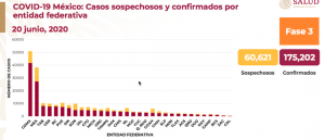En números absolutos Tabasco se ubicaba en tercer lugar nacional, solo por debajo de la Ciudad de México, con 41 mil 777 casos positivos, y el Estado de México, con 27 mil 241 casos positivos.