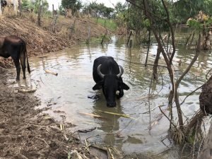En el caso de los pequeños productores pecuarios, sus hatos se están muriendo de inanición y enfermos por estar entre el agua, pues no hay pastura para alimentarlos, los potreros están llenos de agua.