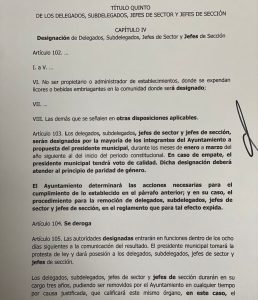El edil durante el periodo 2007-2009, explicó que los Delegados Municipales son los auxiliares del alcalde en cada comunidad y velan por el cumplimiento del Bando de Policía y Buen Gobierno, también cuenta con separos y policías auxiliares; expiden las Cartas de Residencia, Cartas de Recomendación, gestionan obras y programas de beneficio social.