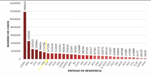 El fracaso de las medidas de mitigación aplicadas por el gobierno de Tabasco, lo representa el ocupar el sexto lugar nacional en casos confirmados acumulados, con 174 mil 738 casos confirmados en toda la pandemia, que representa una tasa de incidencia de casos acumulados – la tercera más alta a nivel nacional– de 6,6652.91 por cada 100 mil tabasqueños.