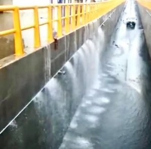 En el Puente Deprimido, se formaba una cascada a lo largo de una junta, por la filtración del agua que inundaba la parte latereal de la obra. Sobre la marcha realizaron adecuaciones para reparar esa falla.