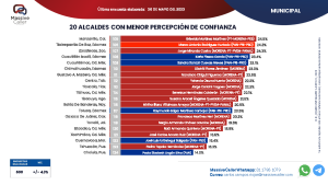 Tristemente, también la alcaldesa de Centro quedó entre los 20 alcaldes de México, que tienen la menor percepción de confianza por parte de sus “gobernados”.