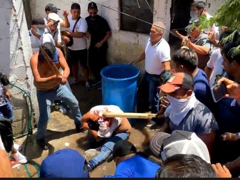 En las imágenes, se observa cómo incluso la mujer quedó semidesnuda (sin playera), mientras hombres y mujeres la pateaban en repetidas ocasiones, lo cual también ocurrió con los otros dos sujetos.