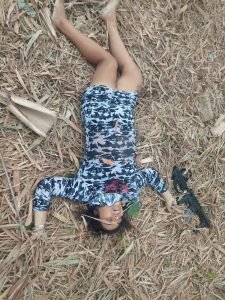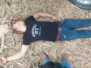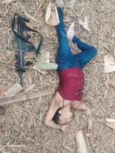 La otra joven abatida portaba un vestido estilo militar, su cuerpo quedo tirado boca arriba junto a su cuerno de chivo con el que intentaba defenderse de los policías que iban tras ella, pero nada le funciono y termino ejecutada.