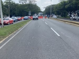 VILLAHERMOSA (CONTRASTE POLÍTICO).- El Ayuntamiento del Centro esperó y se le ocurrió a que terminara el periodo vacacional e iniciaran las clases para cerrar un tramo del carril de alta velocidad de la avenida A. Ruiz Cortines, donde trabaja en la rehabilitación de los aproches de los puentes en la Laguna de las Ilusiones.