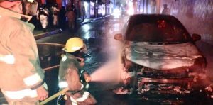 VILLAHERMOSA (CONTRASTE POLÍTICO).- Una tienda de abarrotes completamente incinerada y otra sólo quedó en conato de incendio, así como tres vehículos quemados parcialmente, fue el saldo de los daños de ataques delictivos simultáneos en colonias de la periferia de Villahermosa.