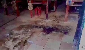 Antes de abandonar el local comercial rociaron gasolina y le prendieron fuego, pero los empleados lograron sofocarlo antes que causaron daño. Solo en el piso quedó la huella de la lumbre.