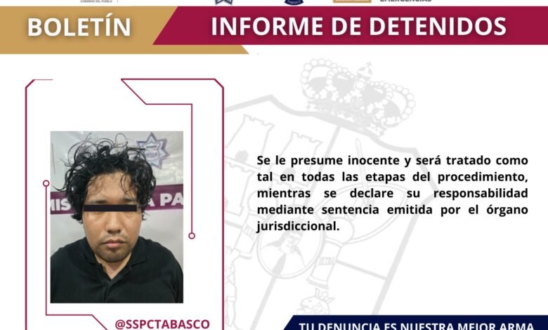 Leer más »VILLAHERMOSA (CONTRASTE POLÍTICO).-En un operativo contra robos a comercios y extorsión, autoridades estatales detuvieron a un hombre de 27 años,…