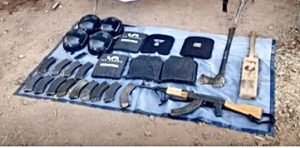 MACUSPANA (CONTRASTE POLÍTICO).—Fuerzas de seguridad federales y estatales rescataron a tres menores de edad y capturaron a cuatro de los secuestradores, a quienes les confiscaron un fusil de asalto AK-47 o Cuerno de Chivo, cargadores, chalecos, cascos y otros utensilios delictivos del crimen organizado.