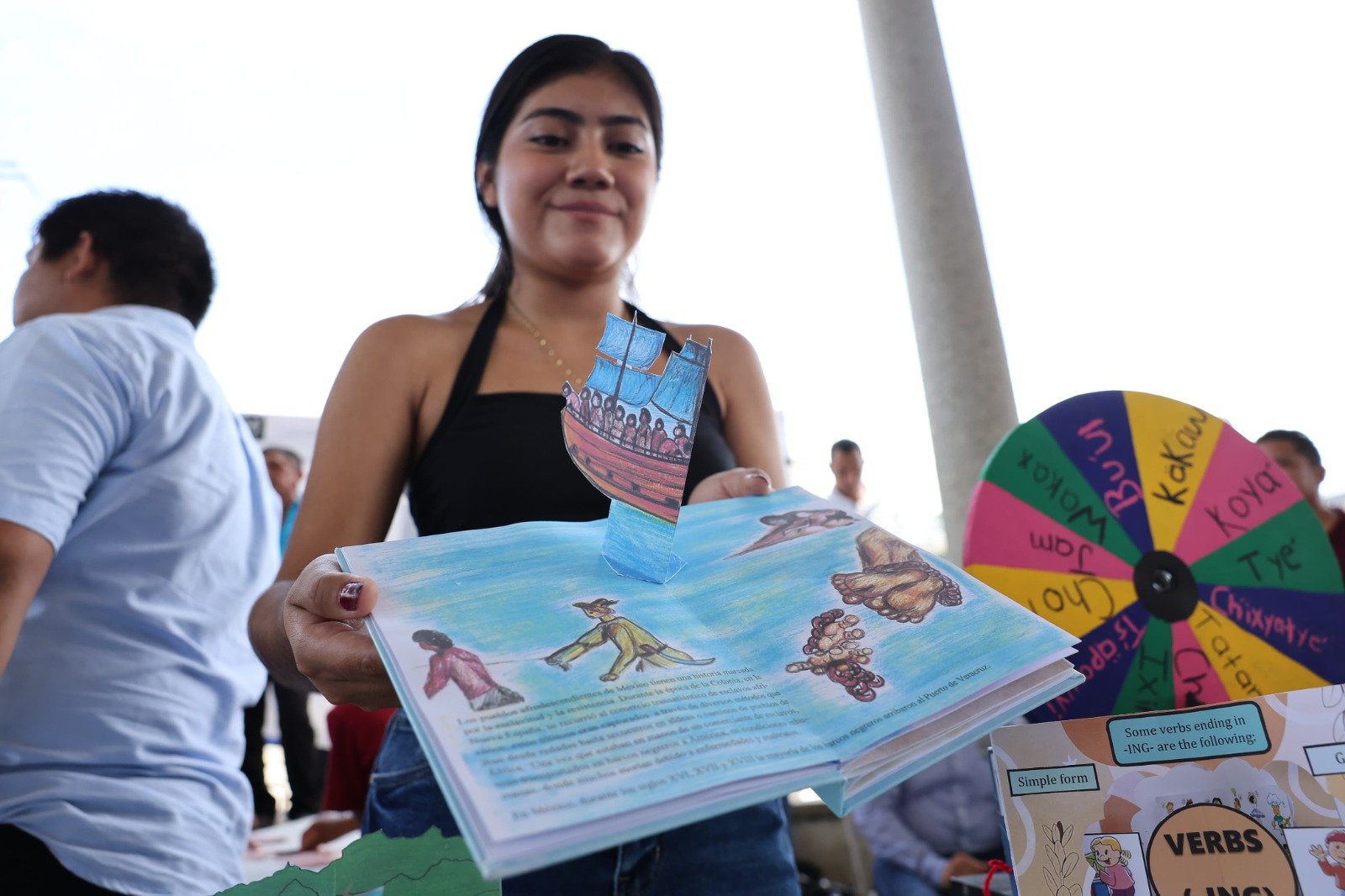 “El 100% de los estudiantes están becados por el apoyo que da nuestra presidenta de la República y sobre todo, también el apoyo que nos da el Gobernador Javier May con infraestructura”, afirmó.