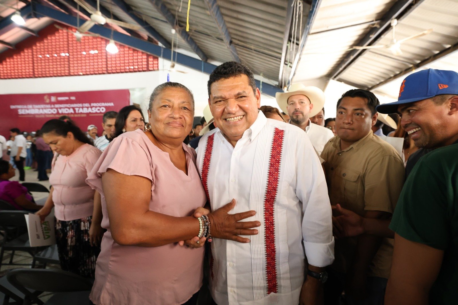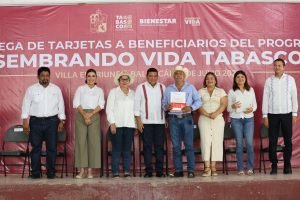 En el Centro Social de la Villa El Triunfo, el Gobernador Javier May Rodríguez encabezó la entrega de los plásticos que acreditan la integración de sembradoras y sembradores de ambos municipios a la estrategia estatal que impulsa la creación de oportunidades laborales permanentes.