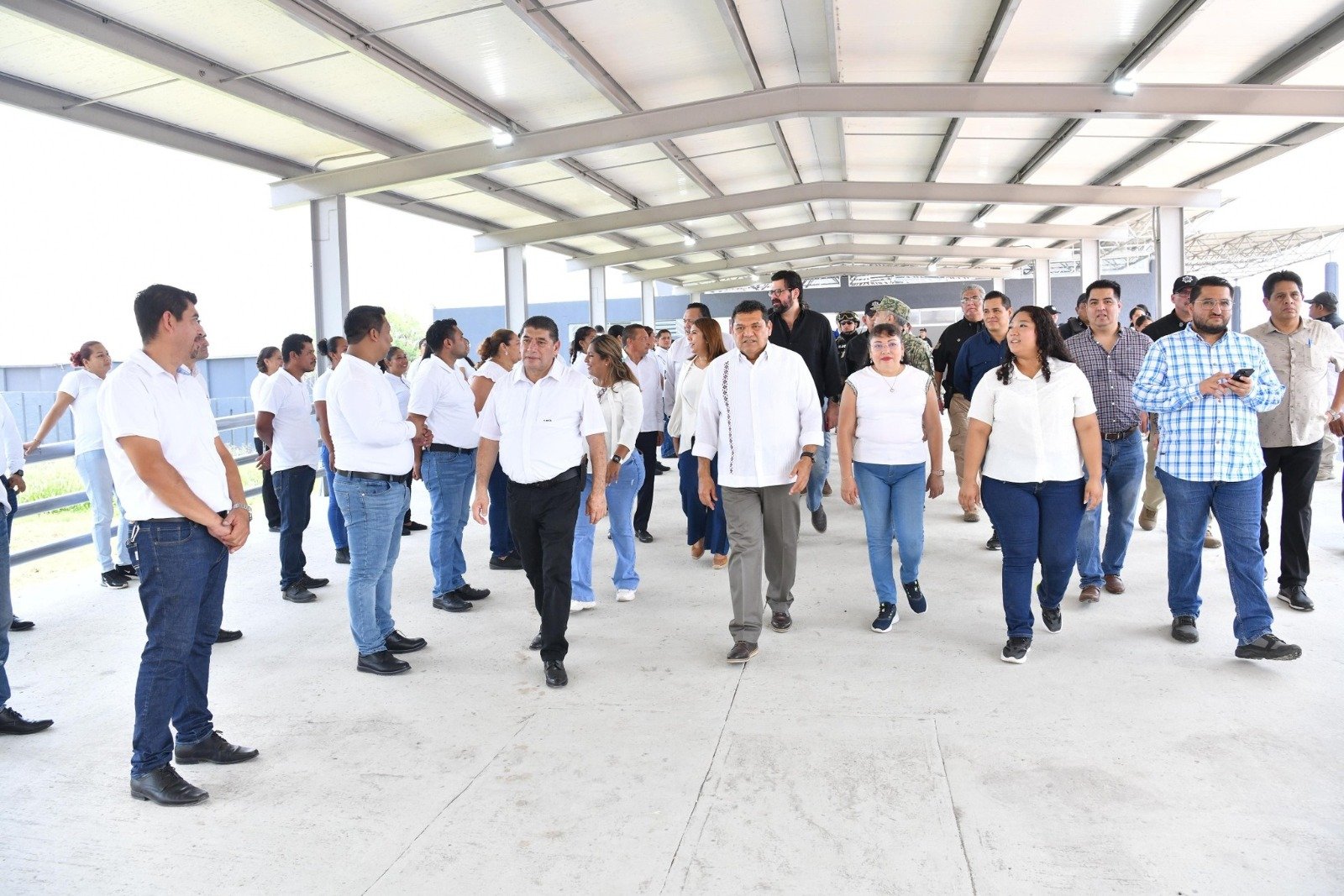 HUIMANGUILLO (CONTRASTE POLÍTICO).-“Buenos días, todavía”, saludó el Gobernador Javier May Rodríguez a los servidores públicos del gabinete de seguridad que lo esperaban en la rampa de entrada del Centro Penitenciario Estatal Número 9, ubicado en el kilómetro 73.5, de la carretera federal Raudales, Malapaso-El Bellote y que, tras su rehabilitación, parece totalmente nuevo.