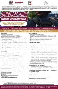 La convocatoria está dirigida a hombres y mujeres entre 18 y 35 años para ocupar los puestos de «Policía de Proximidad» y «Policía Penitenciario», es indispensable contar por lo menos con su preparatoria terminada, no tener antecedentes penales, no tener adicciones y disponer de una estatura entre 1.50 a 1.55 metros.