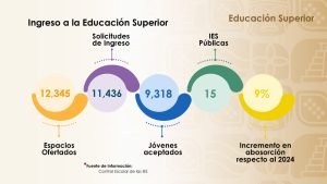Durante la conferencia de prensa matutina del jefe del Ejecutivo, la subsecretaria de Educación Media Superior y Superior, Anabel Suárez Jenner, resaltó que para el ciclo escolar que esta por iniciar, la oferta educativa del Gobierno del Pueblo es de 12 mil 345 espacios en las 15 instituciones de educación superior públicas que operan en la entidad y a la fecha se encuentran disponibles 3 mil 027 lugares para estudiar en algún centro de educación superior.