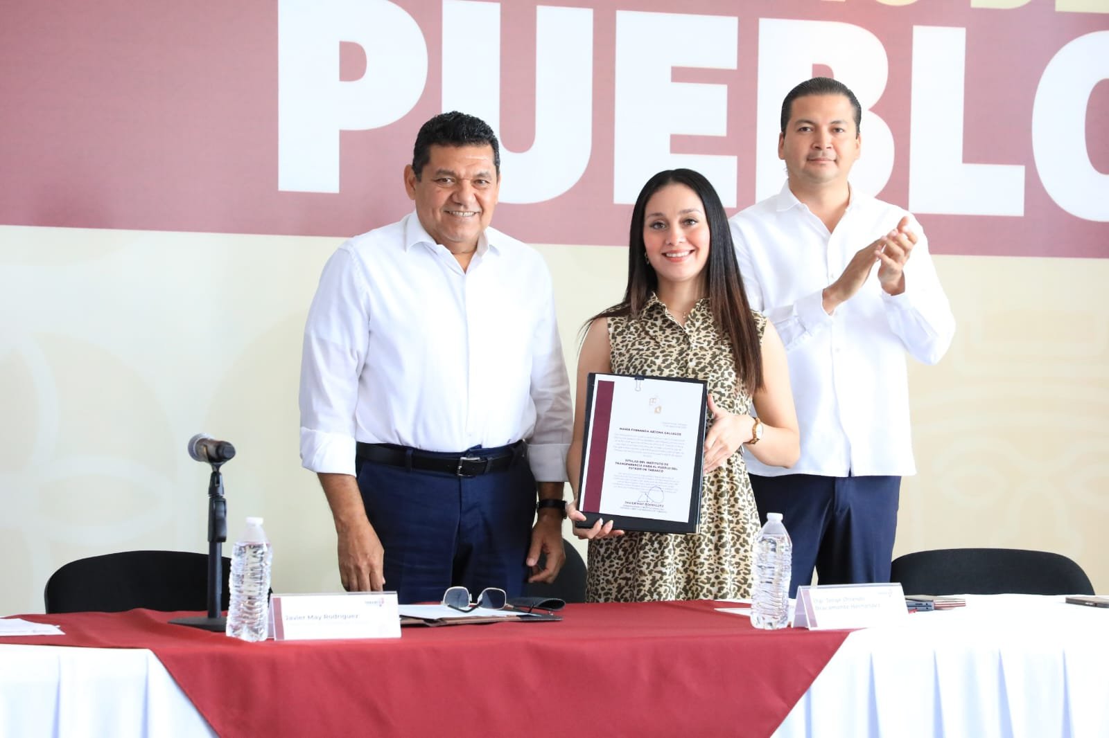 En el desarrollo de la sesión solemne, con que se dio cumplimiento formal a lo establecido por las distintas disposiciones legales en la materia, el Gobernador hizo entrega del nombramiento como titular del Instituto de Transparencia para el Pueblo del Estado de Tabasco a María Fernanda Arjona Gallegos.