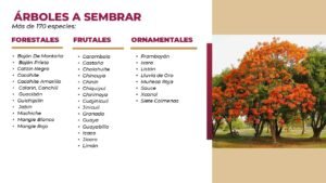 La titular de Semades especificó que durante la jornada se plantarán más de 170 especies, entre forestales, frutales y ornamentales, como Cocohite, Mangle Blanco y Rojo, Carambola, Chinín, Chirimoya, Granada, Guaya, Jícaro, Limón, Framboyán, Listón, Siete Colmenas, Lluvia de Oro y Sauce, entre otras.