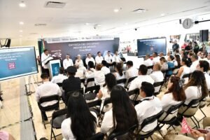 En su mensaje, la directora de Marca Nacional y Política de Marcas Nacionales de la Secretaría de Economía, Bárbara Botello Santibáñez, destacó que el distintivo ‘Hecho en México’ que hoy se entrega al Tren Maya es un símbolo de identidad, orgullo y futuro. Es la certeza de que cuando los mexicanos se proponen algo, no hay límite que no puedan lograr.