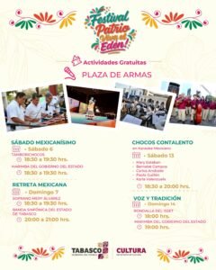 Estas actividades son el preámbulo de lo que será la fiesta tabasqueña y mexicana que el Gobierno del Pueblo tiene preparada para la tarde y noche del 15 de septiembre, que llegará a su máxima expresión, con el Grito de Independencia que encabezará el Gobernador Javier May Rodríguez desde el balcón central del palacio.