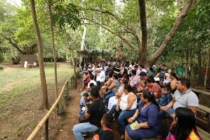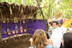 Antes de acomodarse en las gradas naturales rodeado de la comunidad y servidores públicos, May Rodríguez se detuvo en el altar que rinde homenaje a las y los trabajadores del escenario que se adelantaron en el camino, destacando la fotografía de la fundadora María Alicia. “Se quedaron con nosotros”, acotó el mandatario.