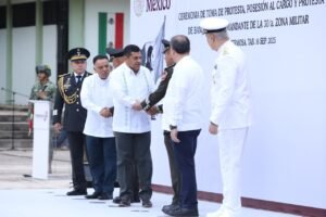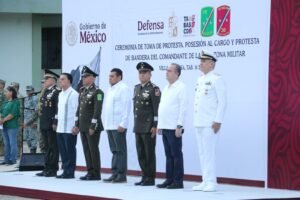 VILLAHERMOSA (CONTRASTE POLÍTICO).-El Gobernador Javier May Rodríguez atestiguó la toma de Posesión de Cargo y Protesta de Bandera del General de Brigada de Estado Mayor, Jesús Alejandro Adame Cabrera, como comandante de la 30ª Zona Militar en Tabasco, cargo encomendado por la Presidenta México y Comandanta Suprema de las Fuerzas Armadas, Claudia Sheinbaum Pardo.