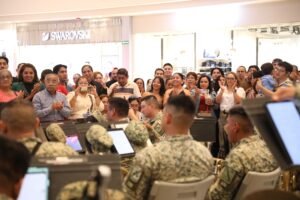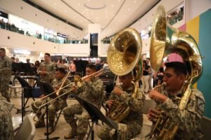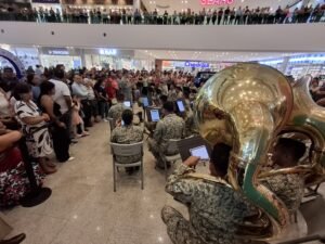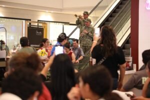 VILLAHERMOSA (CONTRASTE POLÍTICO).-Para beneplácito y gusto de visitantes de Plaza Altabrisa, integrantes de la Banda de Música de la VII Región Militar ofrecieron este domingo un concierto que abarcó desde música clásica de Johann Strauss hasta un popurrí de Chico Ché y la inolvidable «Vamos a Tabasco» de Pepe del Rivero.