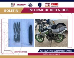 VILLAHERMOSA (CONTRASTE POLÍTICO).-La Secretaría de Seguridad y Protección Ciudadana (SSPC) en coordinación con la Fuerza Interinstitucional de Reacción Táctica (FIRT) Olmeca, detuvieron a un masculino por el presunto delito contra la Ley General de Salud.