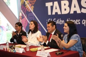 Junto a las secretarias de Turismo del gobierno federal, Josefina Rodríguez Zamora; y de Turismo y Desarrollo Económico en el Estado, Katia Ornelas Gil, el mandatario destacó que, del 3 al 30 de octubre, Tabasco llega al corazón de la Ciudad de México para mostrar la grandeza de su tierra. “Aquí abrimos las puertas del Edén para que visitantes de todas partes descubran lo que nos distingue”, subrayó.