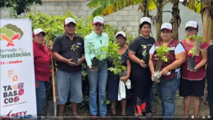 PARAÍSO (CONTRASTE POLÍTICO).-Convocados por la diputada federal Bety Milland Pérez, este domingo muy temprano familias completas de la Ranchería Libertad 1ra (Chivero) se sumaron a la gran hazaña que logro el gobernador Javier May Rodríguez al sembrar 2.4 millones de árboles por todo el territorio tabasqueño, con la ayuda del pueblo.