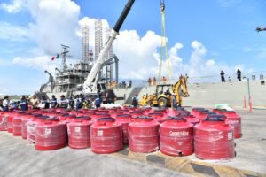 Hasta el muelle 2 de la terminal de usos múltiples de Asipuna Dos Bocas, Paraíso, llegó este miércoles el buque ARM Isla HolBox Bal 02 de la Secretaría de Marina, en el que se trasladó este segundo envío de ayuda y que llegará al puerto de Tuxpan, Veracruz, navegando las aguas del Golfo de México durante las próximas horas.