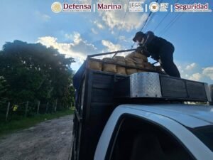 VILLAHERMOSA (CONTRASTE POLÍTICO).-Por ir zigzagueando en la autopista Villahermosa-Coatzacoalcos, la Guardia Nacional (GN) en coordinación con elementos de la Secretaría de Seguridad y Protección Ciudadana (SSPC), Secretaría de la Defensa Nacional (Defensa), Secretaría de Marina (Semar) y Fiscalía General de la República (FGR) detuvieron a dos hombres que transportaban 300 kilos de marihuana en una camioneta con redila.