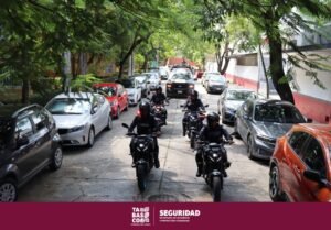 Durante esta acción, elementos de la corporación realizaron recorridos de seguridad y vigilancia en distintas colonias de la capital del Estado, así como en centros comerciales, zonas bancarias, parques y áreas de mayor afluencia ciudadana, con el propósito de inhibir actos delictivos y brindar atención inmediata ante cualquier situación de riesgo.