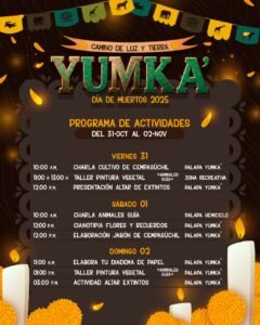 VILLAHEMOSA (CONTRASTE POLÍTICO).-El Centro de Interpretación y Convivencia con la Naturaleza YUMKA’ invita al público en general a participar en la conmemoración del Día de Muertos, una de las tradiciones más representativas de México, a través de diversas actividades culturales, educativas y de conservación que se llevarán a cabo del 31 de octubre al 2 de noviembre bajo el lema “Camino de Luz y Tierra”.