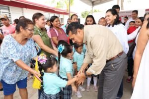 Rodeado de maestros, padres de familia y alumnos, el jefe del Ejecutivo acentuó que los logros alcanzados en la ejecución de obra pública, así como en la implementación de programas sociales y productivos son resultado de la buena administración de los recursos, de la restructuración administrativa hecha al inicio de Gobierno para bajar el costo de la burocracia y de una ‘recaudación histórica’ que permite devolverle el dinero al pueblo a través de acciones de bienestar.