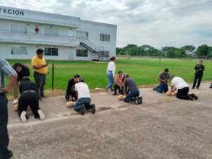 Durante la jornada se impartieron tres capacitaciones: el Curso Básico de Primeros Auxilios, que abordó temas como las funciones de la brigada de primeros auxilios, evaluación de la escena, activación del servicio médico de urgencias, evaluación del paciente, signos vitales y atención de emergencias respiratorias y cardiovasculares.