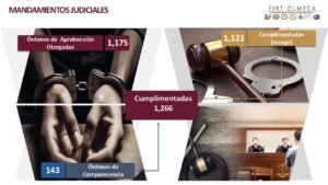“Las medidas cautelares que hemos obtenido son de prisión preventiva oficiosa 945, justificada 490 y otras, en total son mil 304”, explicó.