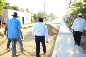 Durante el recorrido, acompañado de la presidenta municipal Beatriz Castañón Félix, May constató la construcción de casi mil metros lineales de pavimento hidráulico, además de la rehabilitación de las redes de agua potable, drenaje sanitario, instalación de señalamientos, y construcción de guarniciones y banquetas.
