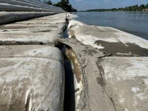 EJIDO COLIMA (CONTRASTE POLÍTICO).–Aunque tras una década de gestiones burocráticas ante la Comisión Nacional del Agua (CONAGUA), finalmente se construyó la obra de protección para evitar que el río Samaria continuará “devorando” a esta comunidad del municipio de Cunduacán, pero al parecer a esa defensa hidráulica se edificó con irregularidades, pues se ya empezó a derrumbar.
