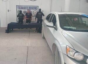 La detención ocurrió en la ranchería León Zárate, primera sección, luego de que los uniformados atendieran un reporte ciudadano que alertaba sobre un automóvil sospechoso. El vehículo fue localizado a la altura de la iglesia Santa Bárbara.
