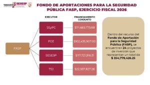 Para 2026, se ejecutarán 24 proyectos de inversión considerados prioritarios, financiados con recursos del Fondo de Aportaciones para la Seguridad Pública (FASP) y el Fondo de Fortalecimiento para las Instituciones de Seguridad Pública (FOFISP).
