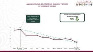 De acuerdo con los datos oficiales, en diciembre de 2025 se registró un promedio de 0.8 homicidios dolosos diarios, frente a los 2.3 diarios del mismo mes en 2024. En cifras anuales, el estado pasó de 73 homicidios en diciembre de 2024 a 27 en diciembre de 2025.
