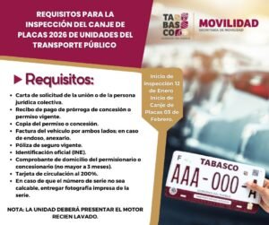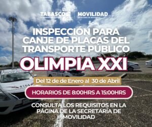 En Villahermosa, la Semovi habilitó un módulo permanente de inspección en el estacionamiento del Olimpia XXI, el cual operará de lunes a viernes, de 8:00 a 15:00 horas, hasta el 30 de abril.