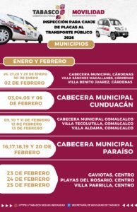 Este proceso se lleva a cabo en coordinación con la Secretaría de Administración y Finanzas de Tabasco y la Policía Estatal de Caminos, mediante un calendario de módulos itinerantes que recorrerán las cabeceras y villas de los 17 municipios.