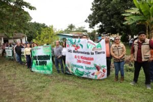 El gobernador explicó que la estrategia estatal de Sembrando Vida Tabasco, inspirada en el modelo impulsado por el expresidente Andrés Manuel López Obrador, tiene como meta reforestar 100 mil hectáreas con 100 millones de árboles, garantizando además un ingreso mensual de 5 mil pesos por productor.