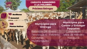 VILLAHERMOSA (CONTRASTE POLÍTICO).-El programa Crédito Ganadero a la Palabra se consolida como una de las estrategias productivas más exitosas del Gobierno del Pueblo, al proyectar para este 2026 el nacimiento de más de 3 mil crías bovinas tan solo en el municipio de Macuspana, lo que representará una derrama económica superior a 50 millones de pesos para pequeños productores.