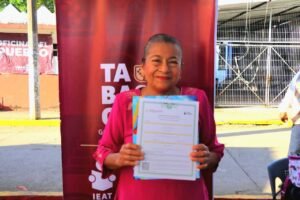La jornada también permitió resolver trámites administrativos que antes implicaban largos desplazamientos. Cristóbal Pérez Vázquez, egresado de secundaria, obtuvo el duplicado de su certificado sin tener que viajar a la cabecera municipal, evitando gastos que afectan la economía familiar.